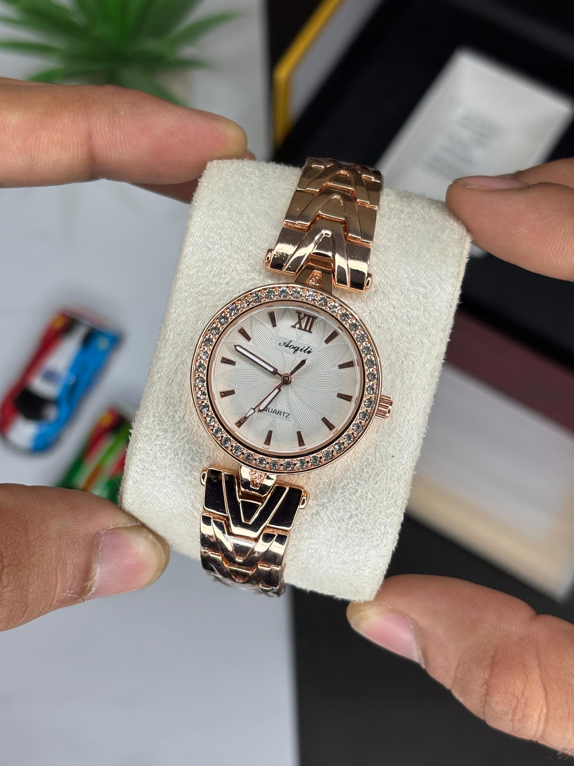 Elevate your elegance with the AOGILI ROSEGOLD Ladies Watch, featuring a finely crafted golden chain that complements its sophisticated design. This timepiece combines timeless style with quality craftsmanship, making it a perfect accessory for refined occasions. Its durable chain ensures comfort and lasting wear, exuding grace with every glance.