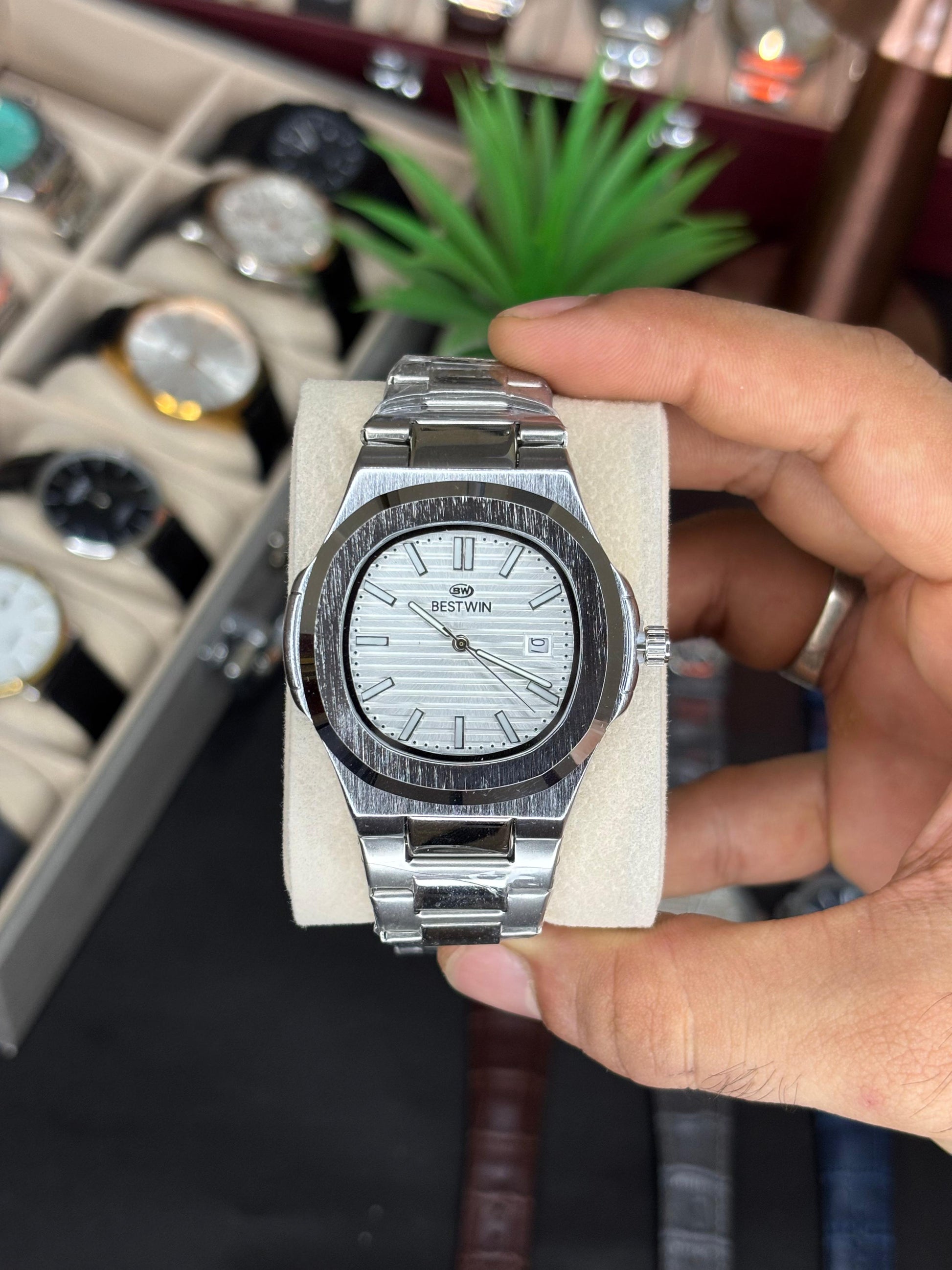 Experience elegance with the BESTWIN WHITE watch, featuring a striking blue dial and a durable stainless steel design. Its butterfly lock ensures secure wear while maintaining a sleek profile. Crafted with fine quality and exceptional finishing, this timepiece offers sophistication at an accessible price.