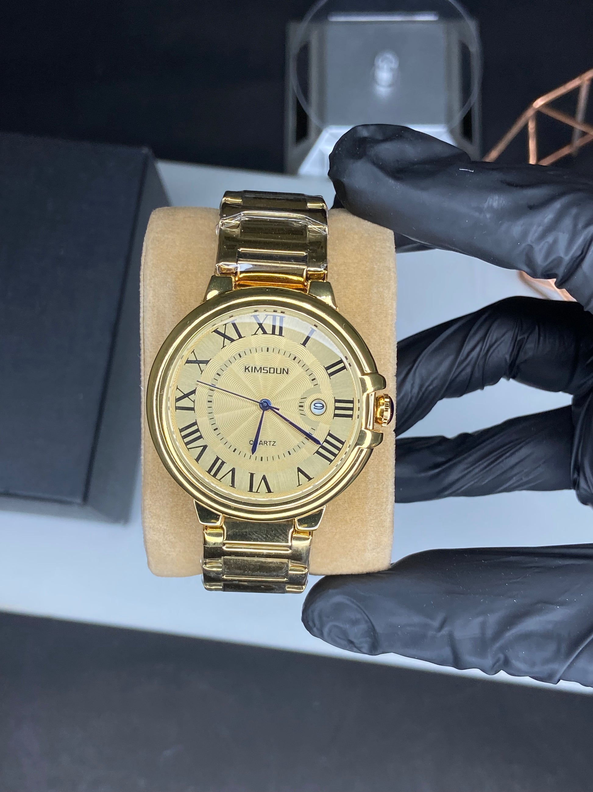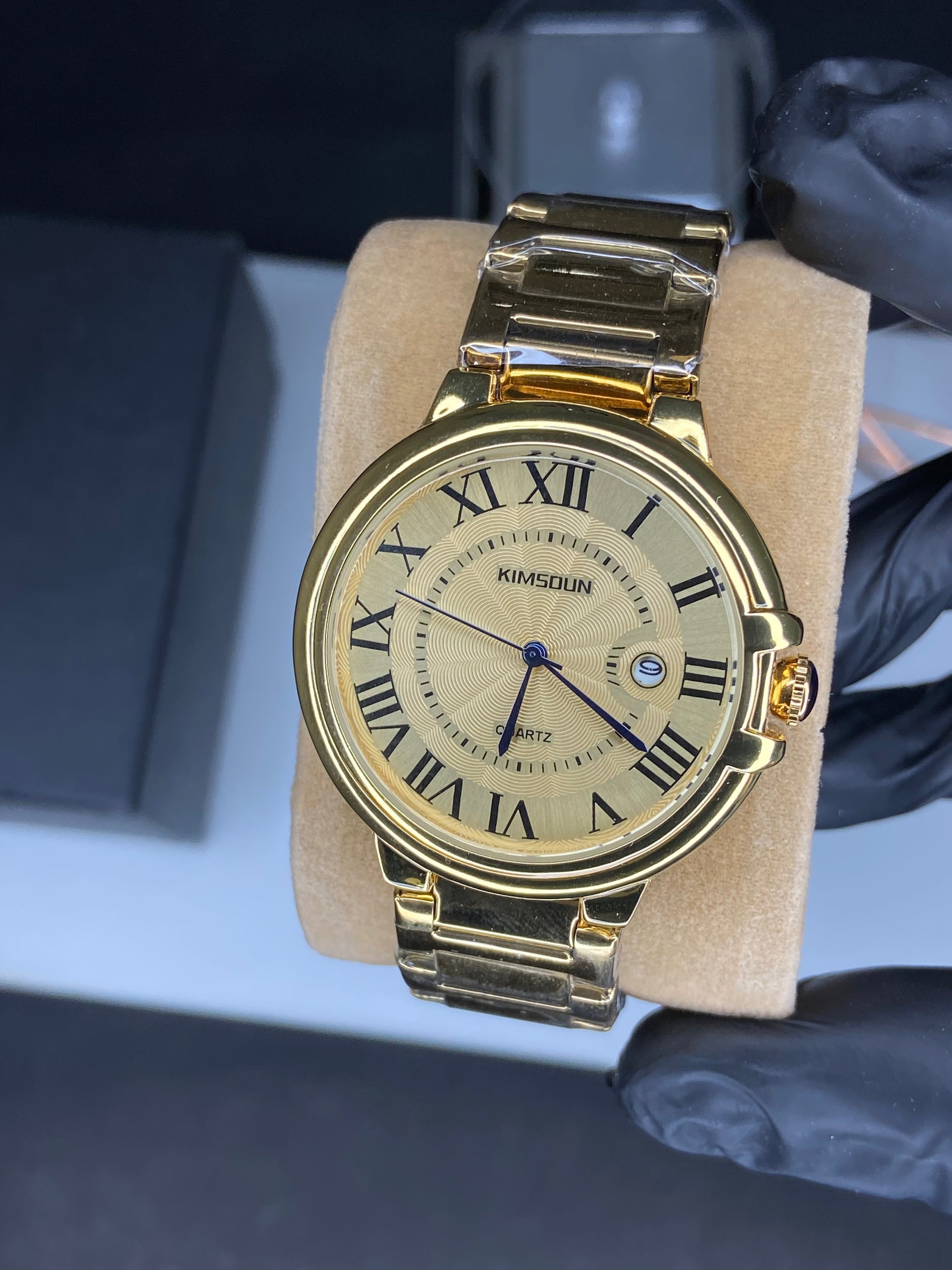 Introducing the KIMSOUN GOLDEN watch, a masterpiece of luxury and art. This timepiece boasts a pure gold color, elegant Roman numerals, and a precise automatic movement. Elevate your style and make a statement with KIMSOUN GOLDEN.