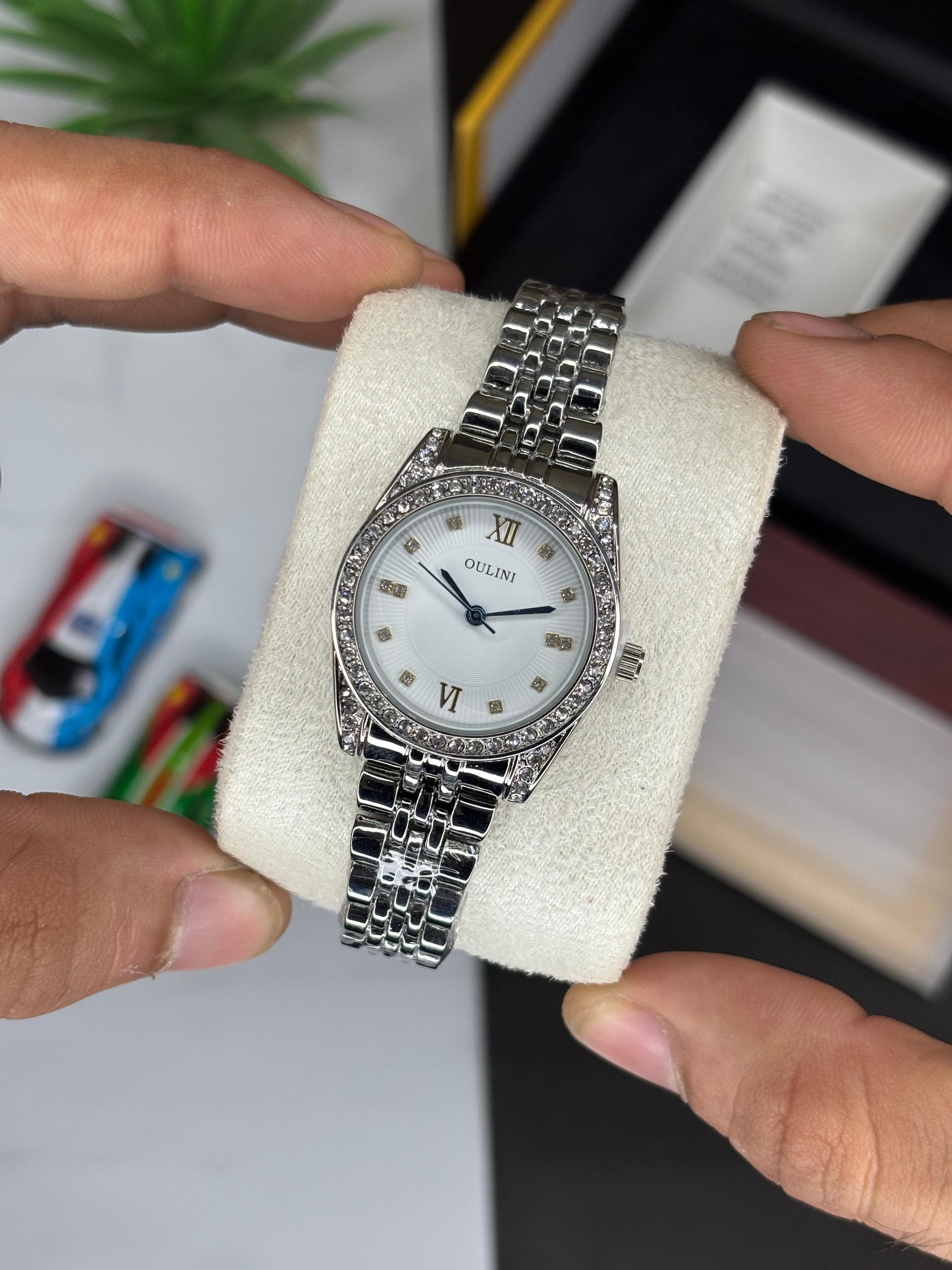 Elevate your elegance with the OULINI Diamond WHITE chain watch, designed for the discerning woman. Featuring a delicate pink chain and a diamond-studded dial, this timepiece offers a refined blend of subtle luxury and timeless style. Its graceful design complements any outfit, making it an ideal accessory for both everyday wear and special occasions. Experience understated sophistication with every glance at this exquisite ladies’ watch.