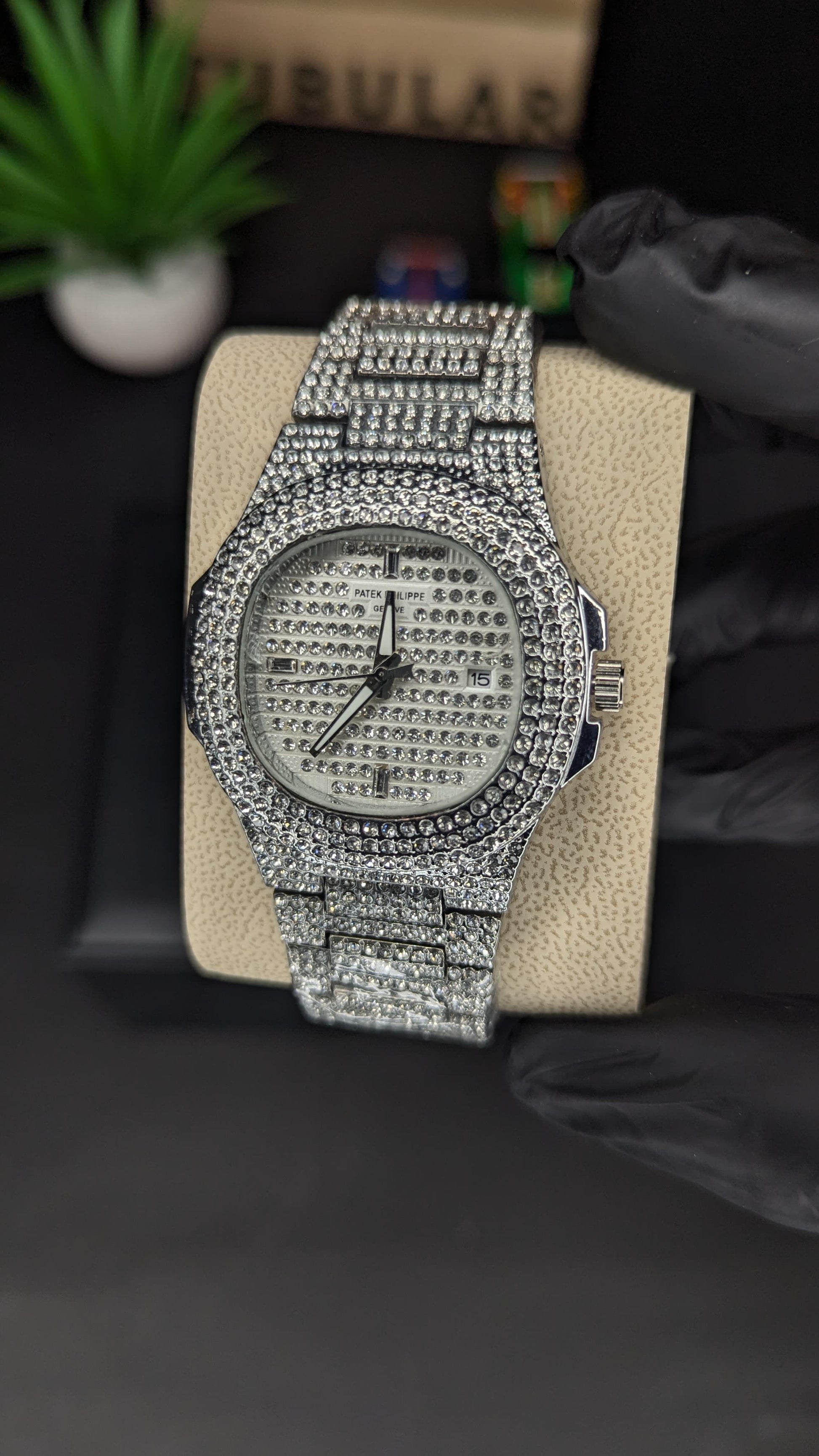 Indulge in elegance with the PP NAUTILUS ICED watch. Featuring full diamonds of fine quality, this watch exudes luxury and sophistication. White diamonds add a touch of glamour to this timepiece, making it a must-have for any discerning collector. Elevate your style with the ultimate statement of wealth and refinement.