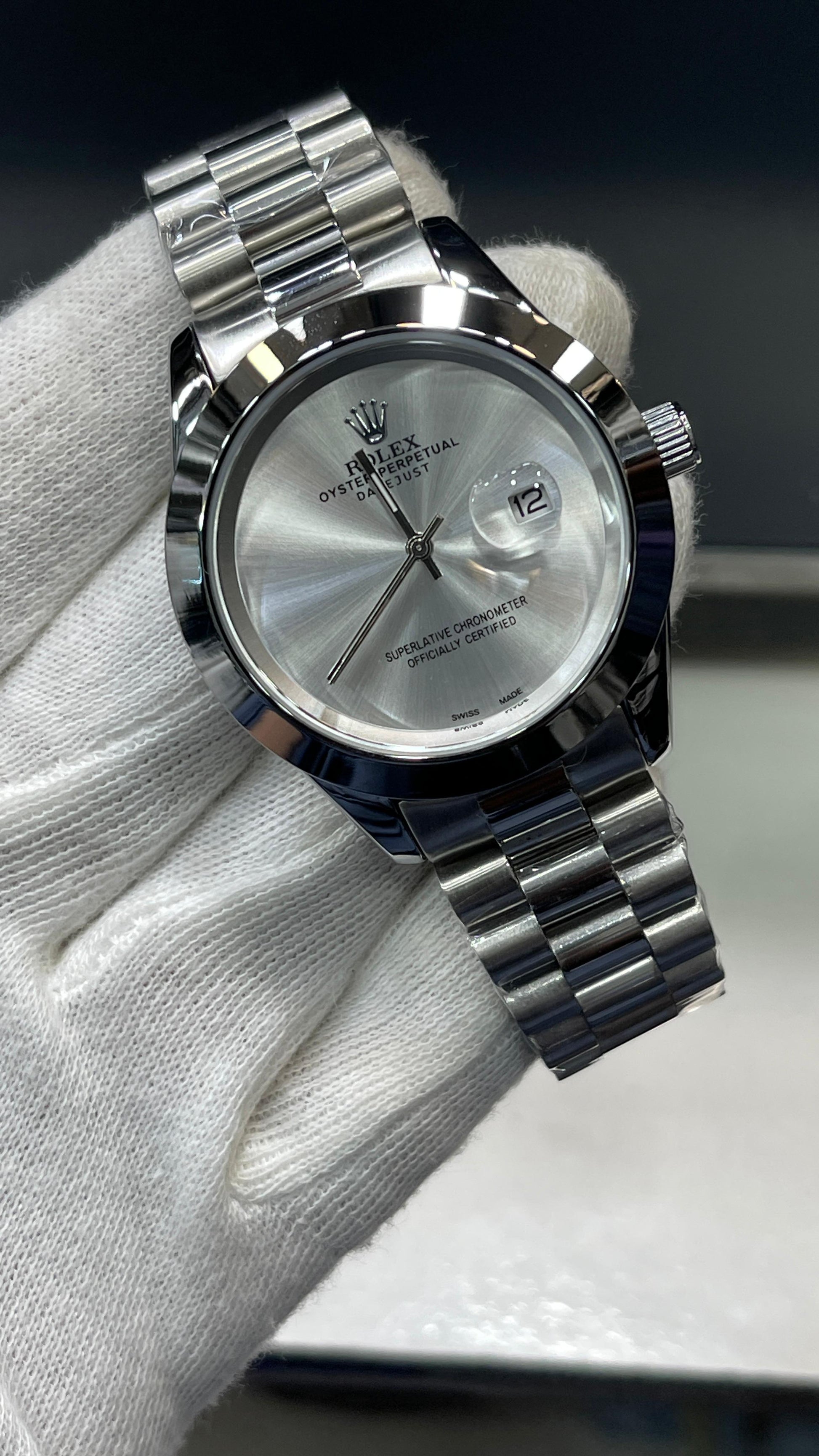 Experience the luxurious elegance of the RLX DATE-JUST watch. With its fine quality date feature and presidential chain, this watch is the epitome of sophistication. Make a statement with this premium timepiece, perfect for any occasion. Elevate your style with the RLX DATE-JUST.