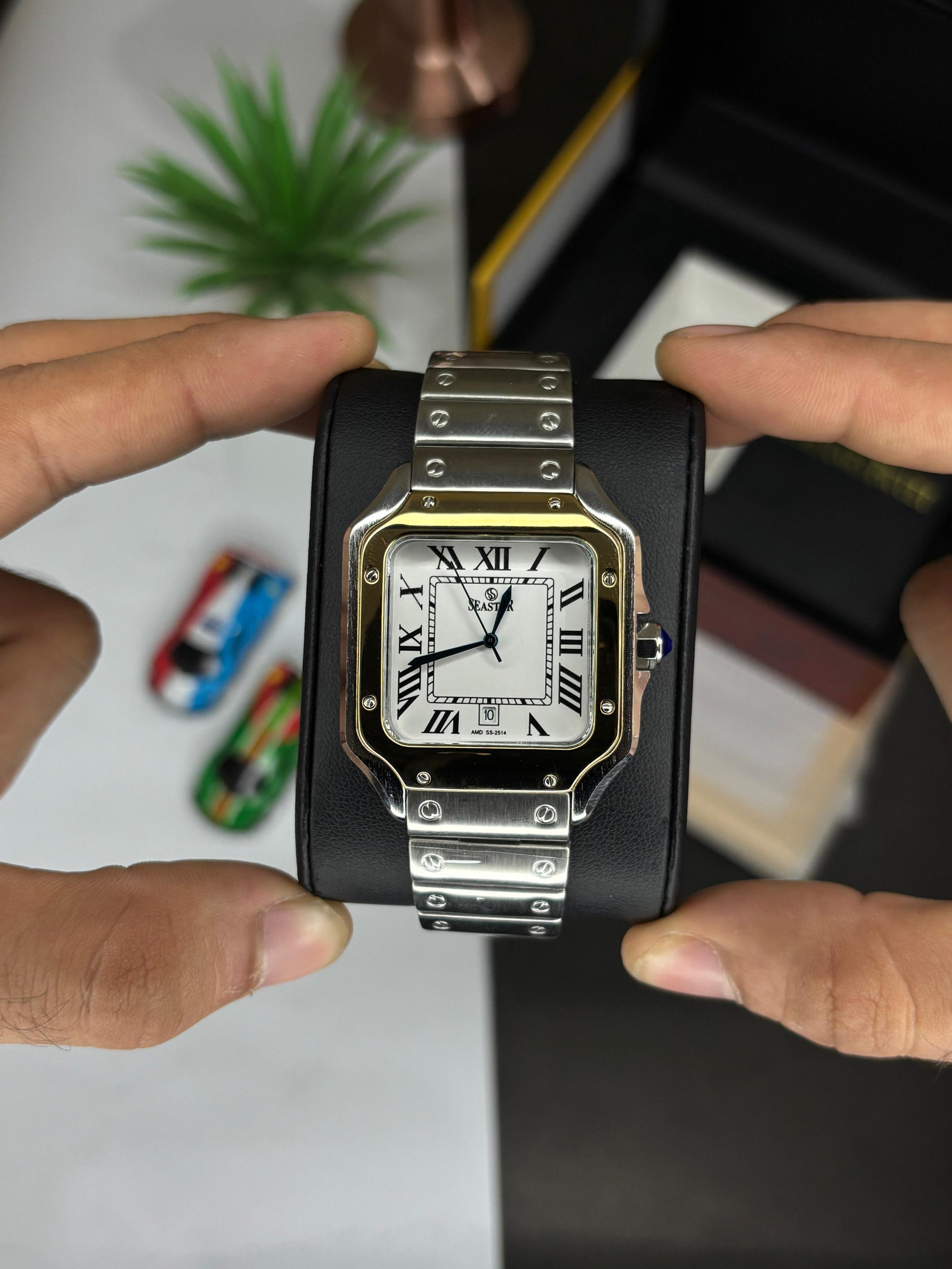 Experience timeless elegance with the SEASTAR Top-Notch watch, crafted for those who appreciate quality and style. Featuring a heavyweight design and a secure butterfly clasp, this timepiece combines durability with refined comfort. The waterproof case ensures reliable performance in all conditions, while the classic Roman numerals and date function enhance its sophisticated appeal. Perfect for both formal and everyday wear, the SEASTAR watch is a statement of precision and enduring craftsmanship.