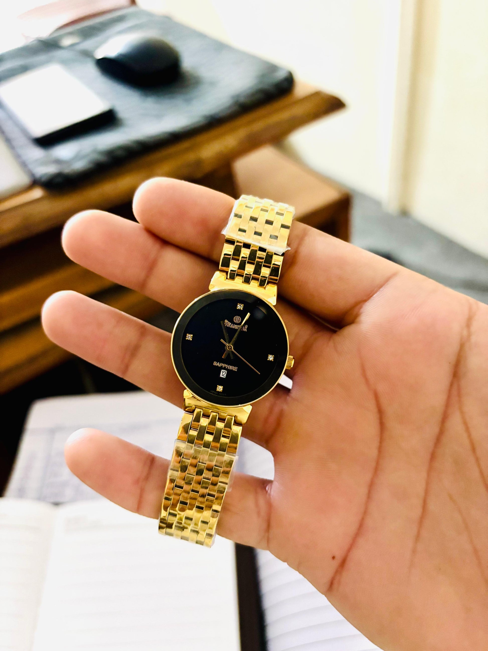 Elevate your elegance with the SWANSTAR Shapprire Golden Watch for ladies. Designed with a refined golden finish, this timepiece combines classic beauty with modern sophistication. Its sleek silhouette and radiant shimmer make it the perfect accessory for any occasion, adding a touch of luxury to your wrist. Effortlessly stylish, it complements both formal and casual outfits, ensuring you always make a graceful statement.